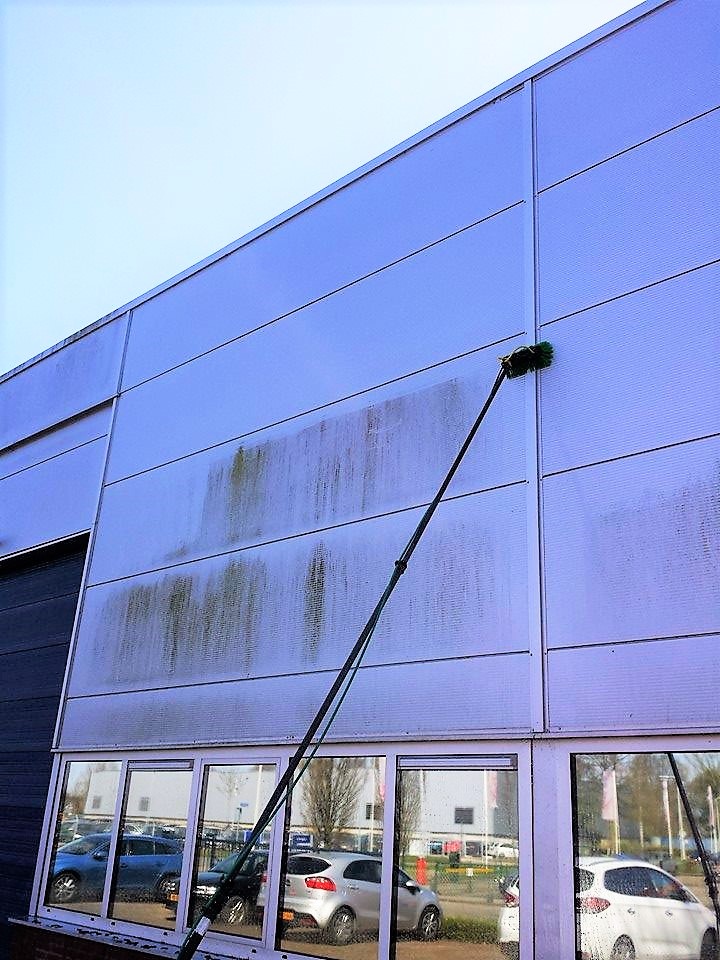 Hardnekkige vervuiling zoals olie, roet of dikke moslagen behandelen we vooraf met een milieuvriendelijk reinigingsmiddel. Dit zorgt ervoor dat het vuil makkelijker loskomt tijdens de hoofdreiniging.