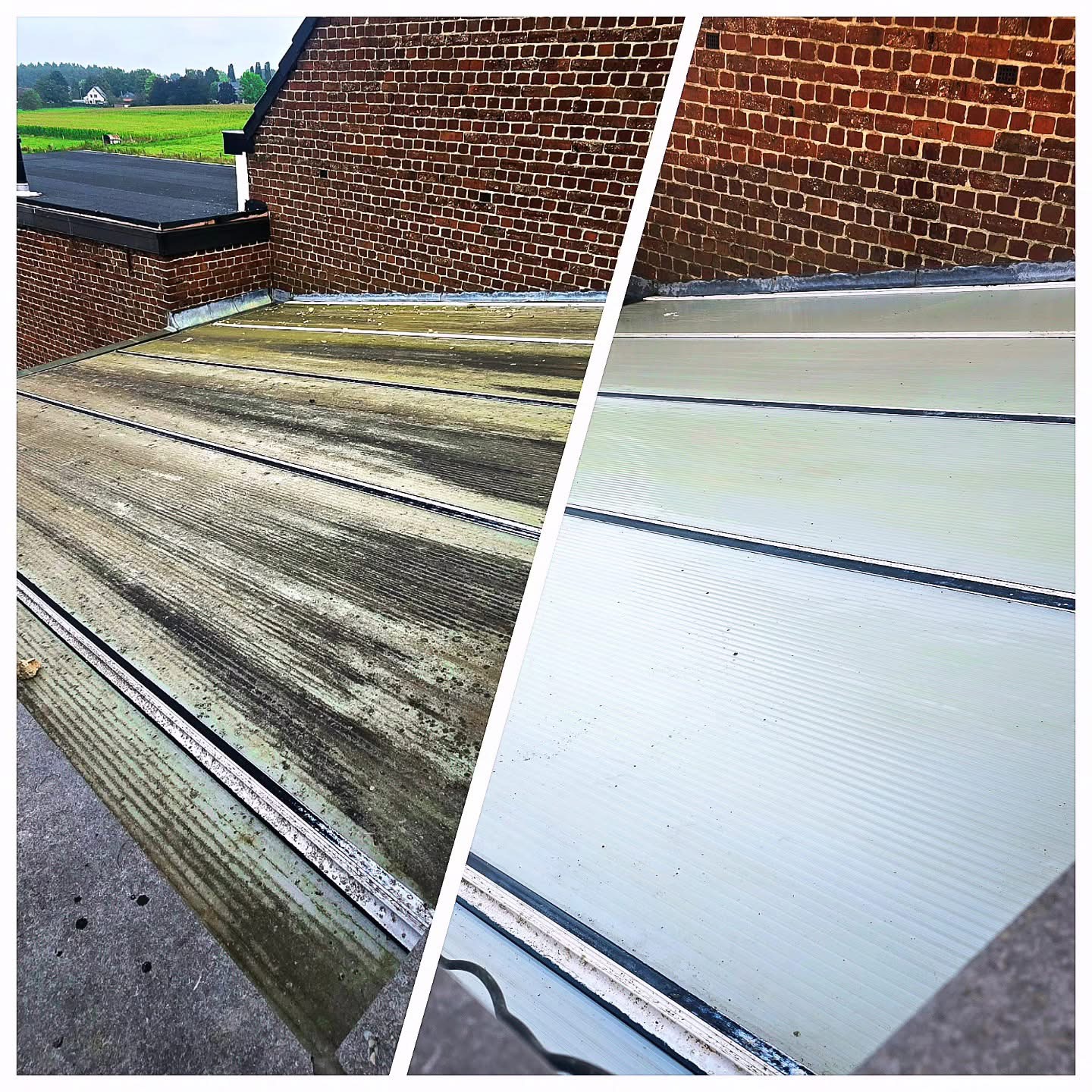 We gebruiken een combinatie van zachte druk en aangepaste reinigingsmiddelen die veilig zijn voor alle oppervlakken. Zo verwijderen we moeiteloos vuil, aanslag, mos en ander hardnekkig vuil, zonder risico op schade aan het materiaal. - Reiniging van Ramen en Dakplaten